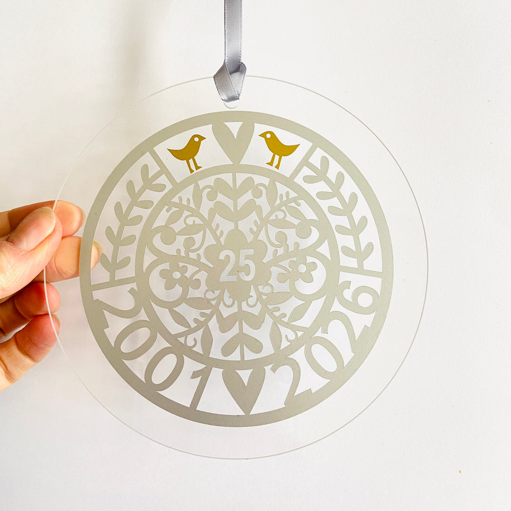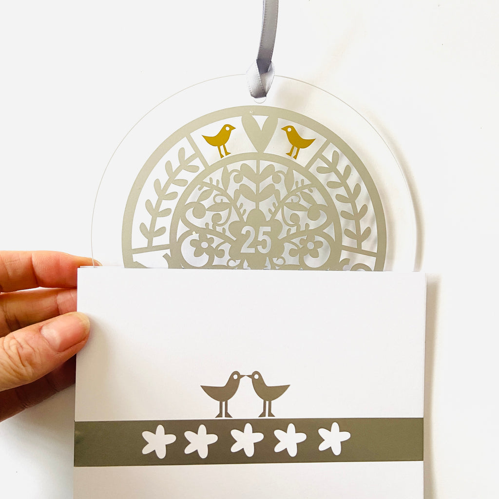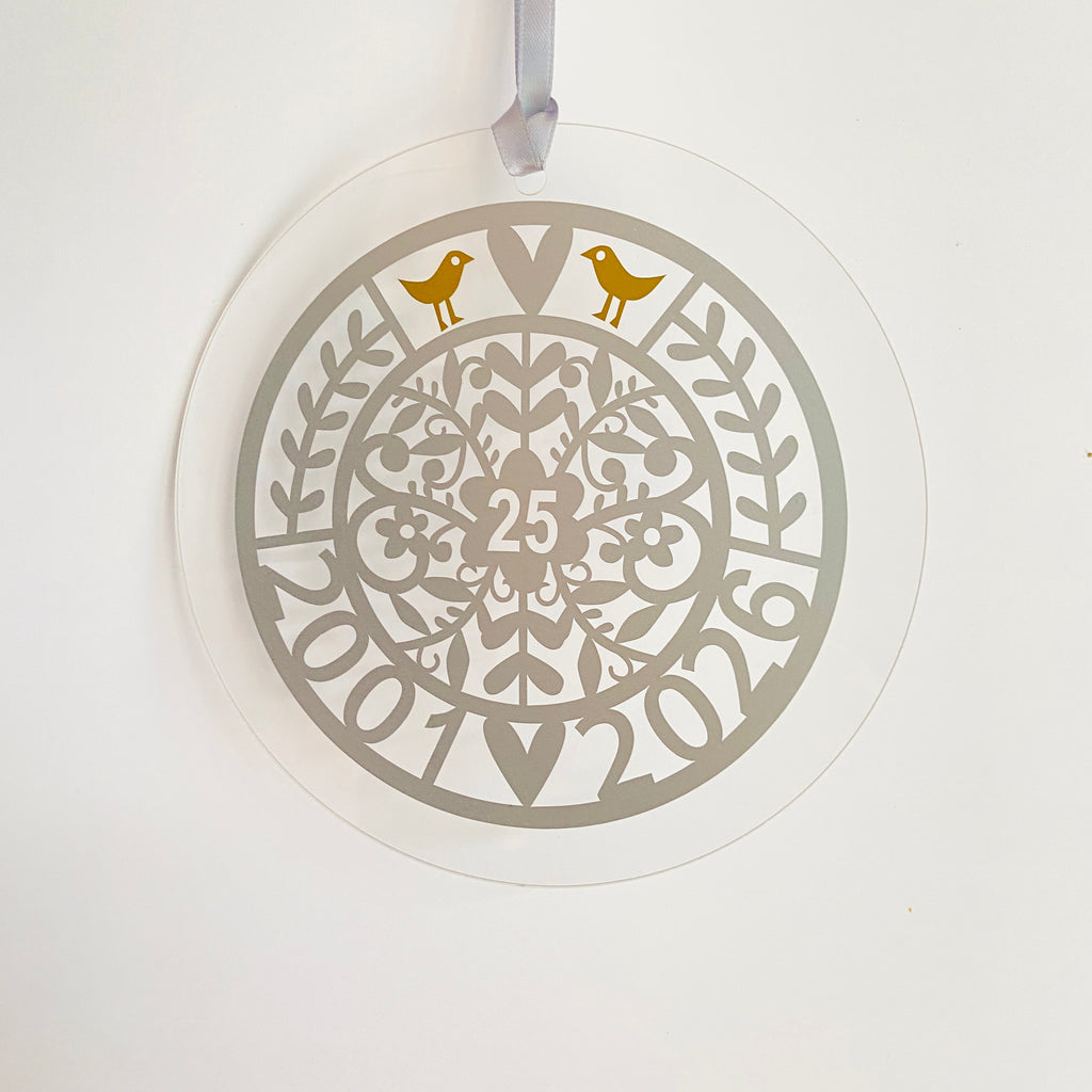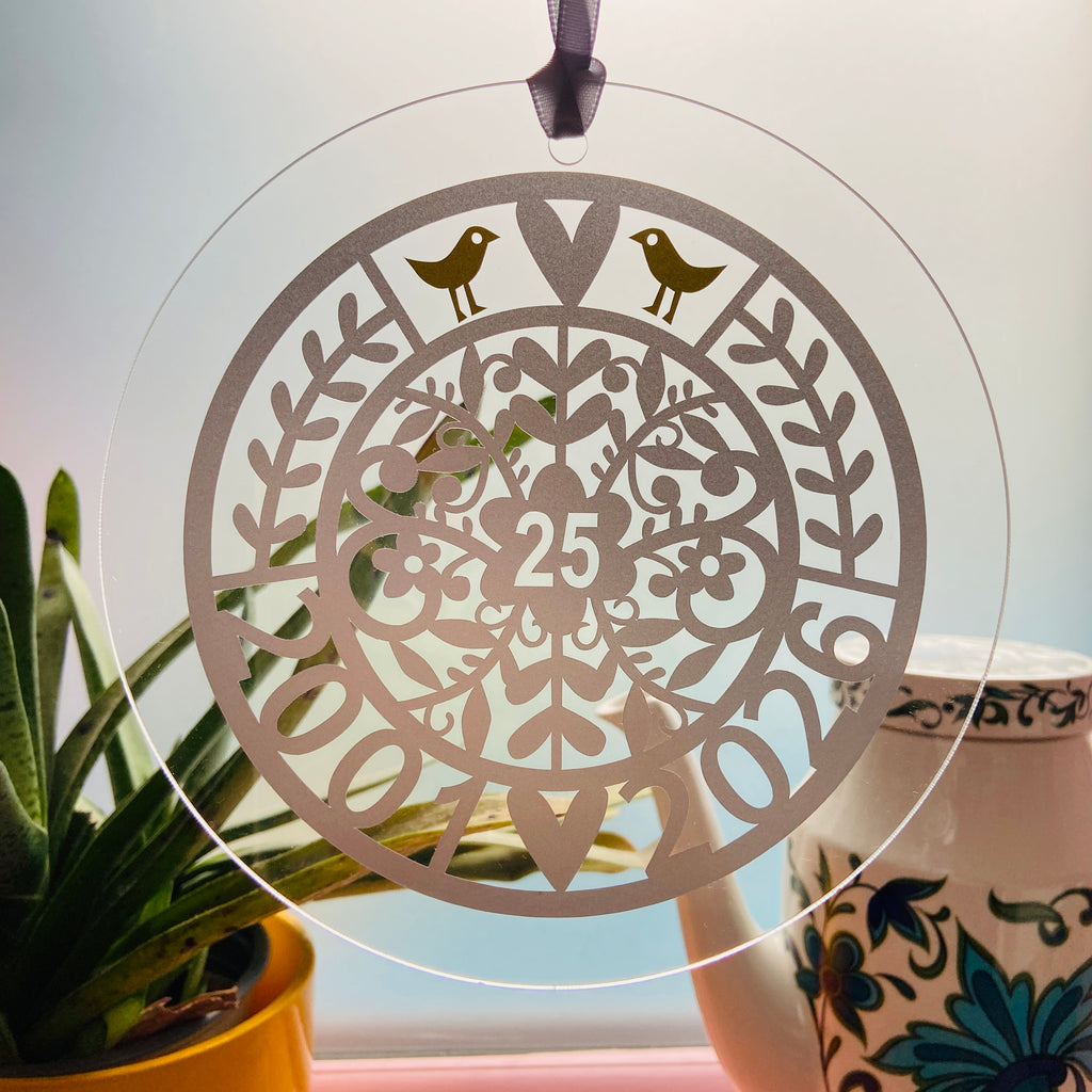 A beautiful 25th hanging decoration for a window or wall, stylishly packaged for Gifting.